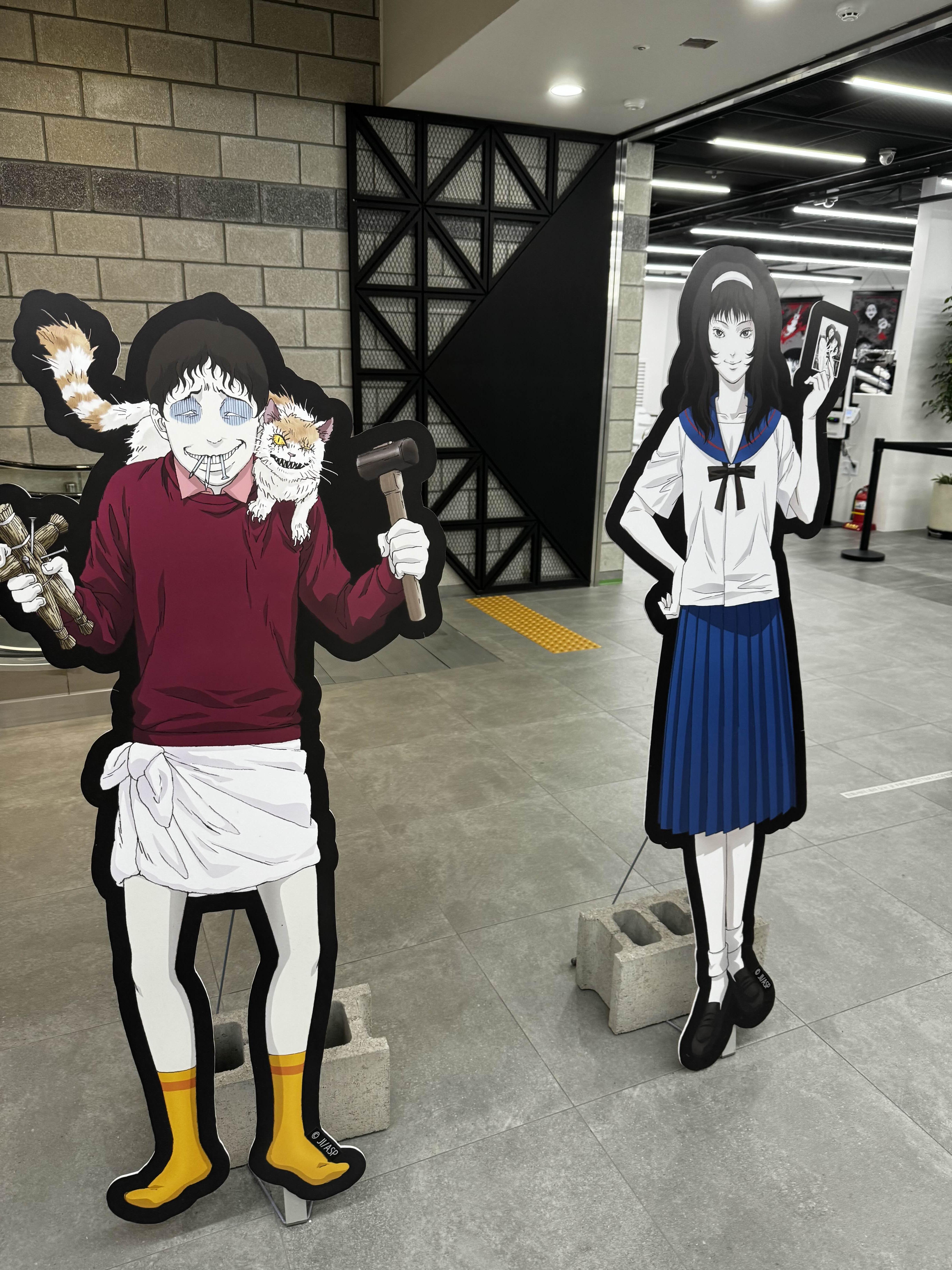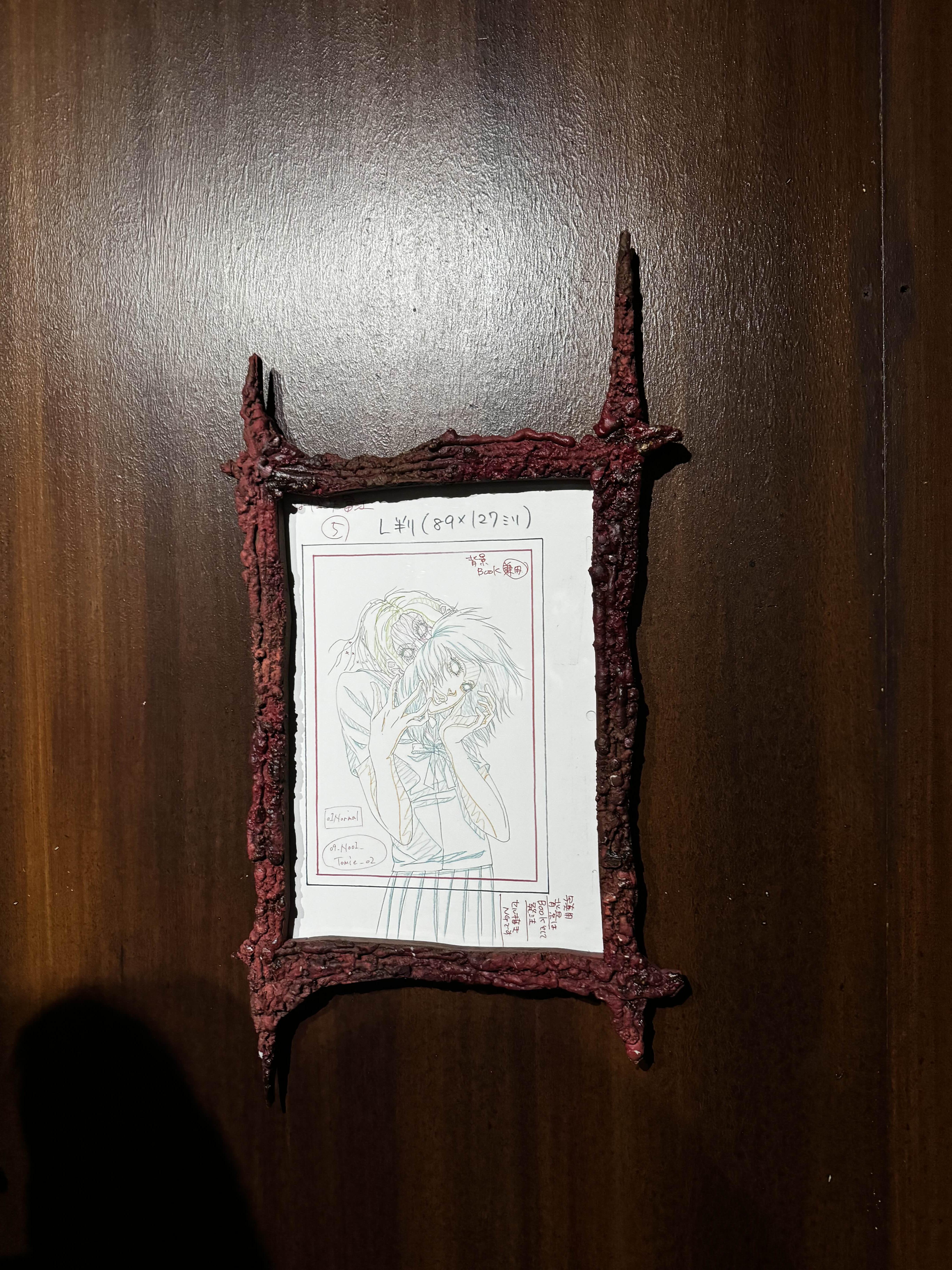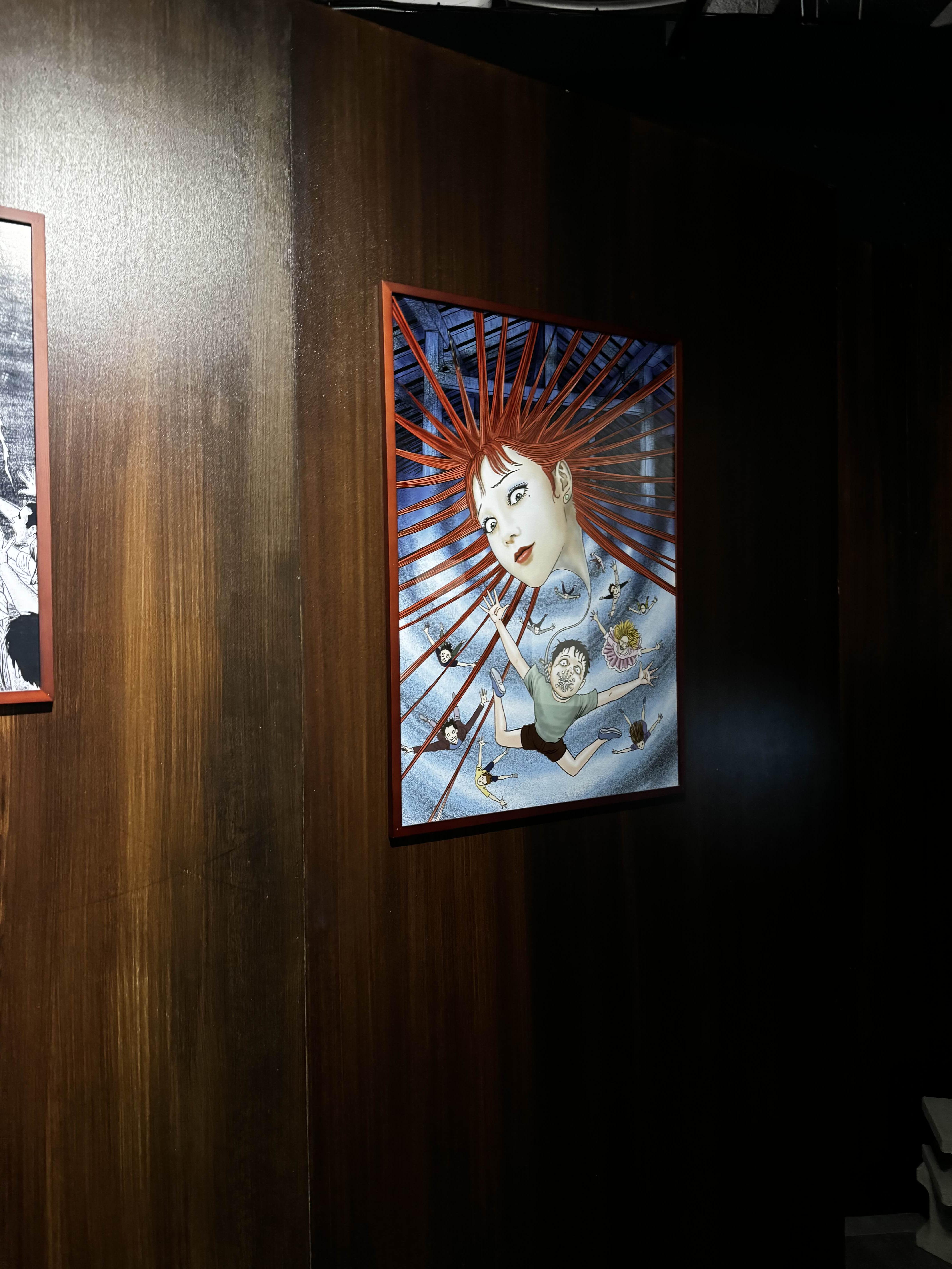 10~15분 정도 그런 긴장감 넘치는 공포 체험이 끝나고 나면, 드디어 진짜 전시회가 시작돼요. 이토 준지의 대표작 장면들이 전시된 곳에서 사진을 찍을 수 있는 포토존도 있었어요.