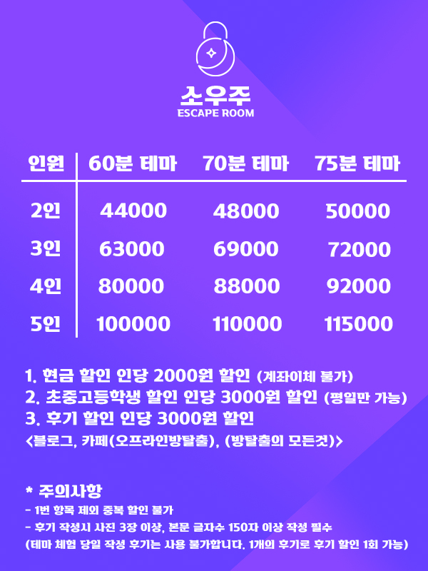 결론적으로, 수원 인계동의 ‘소우주’ 방탈출 카페는 방탈출을 좋아하는 사람이라면 꼭 한번 도전해볼 만한 곳이에요. 특히 ‘풀문’ 테마는 방탈출 초보부터 숙련자까지 모두 즐길 수 있는 환상적인 판타지 어드벤처를 선사해줄 거예요.