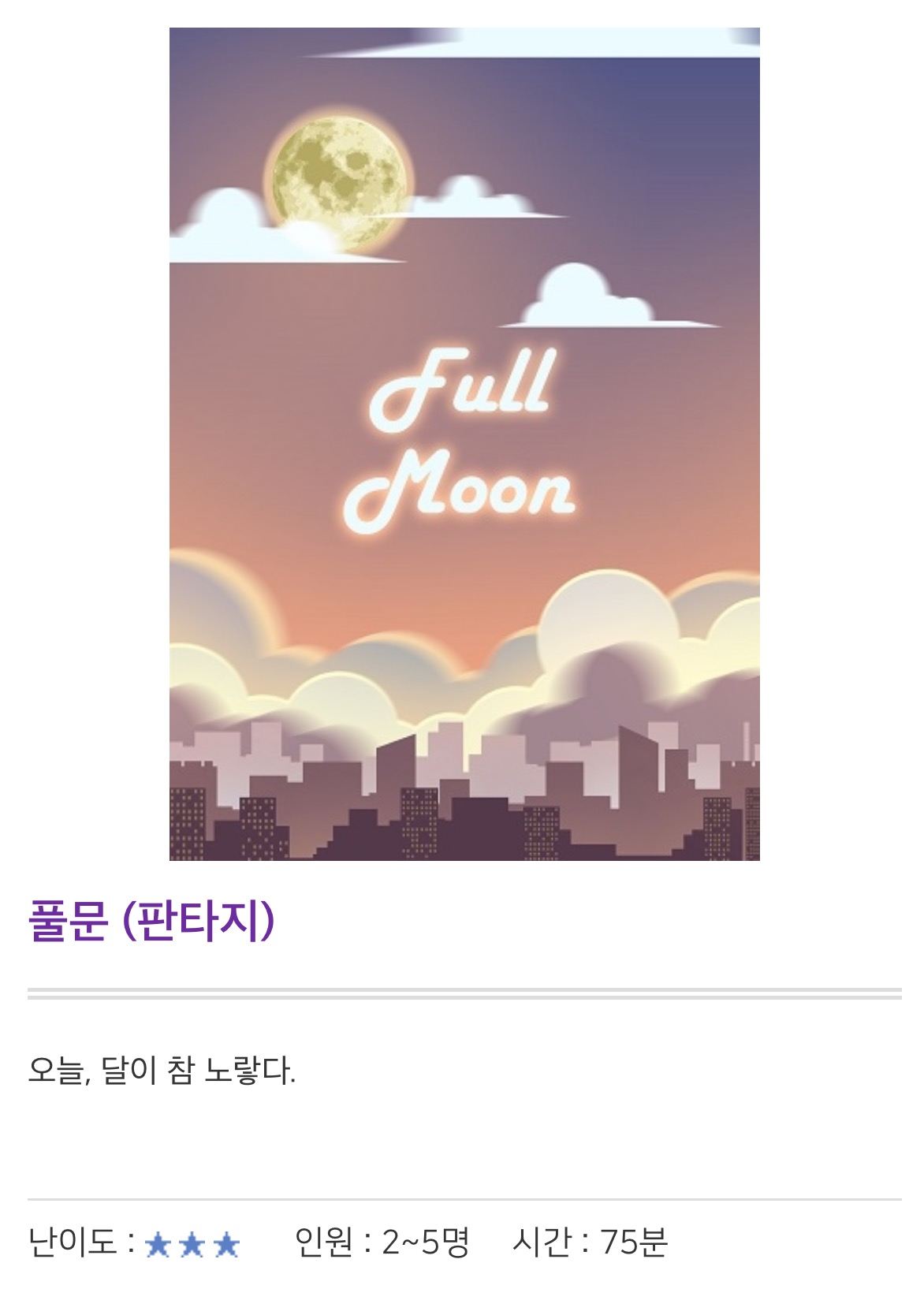 게임을 진행하면서 느낀 점은, 스토리와 인테리어가 얼마나 잘 맞아떨어지냐가 방탈출의 재미를 좌우한다는 거였어요. ‘풀문’은 그 점에서 정말 높은 점수를 줄 수 있었답니다. 전체적으로 귀엽고 아기자기한 테마가 많지만, ‘풀문’은 그 중에서도 인테리어가 특히 매력적이었어요. 방마다 다른 분위기를 자아내면서도 하나의 이야기로 이어지는 점이 정말 인상 깊었죠.