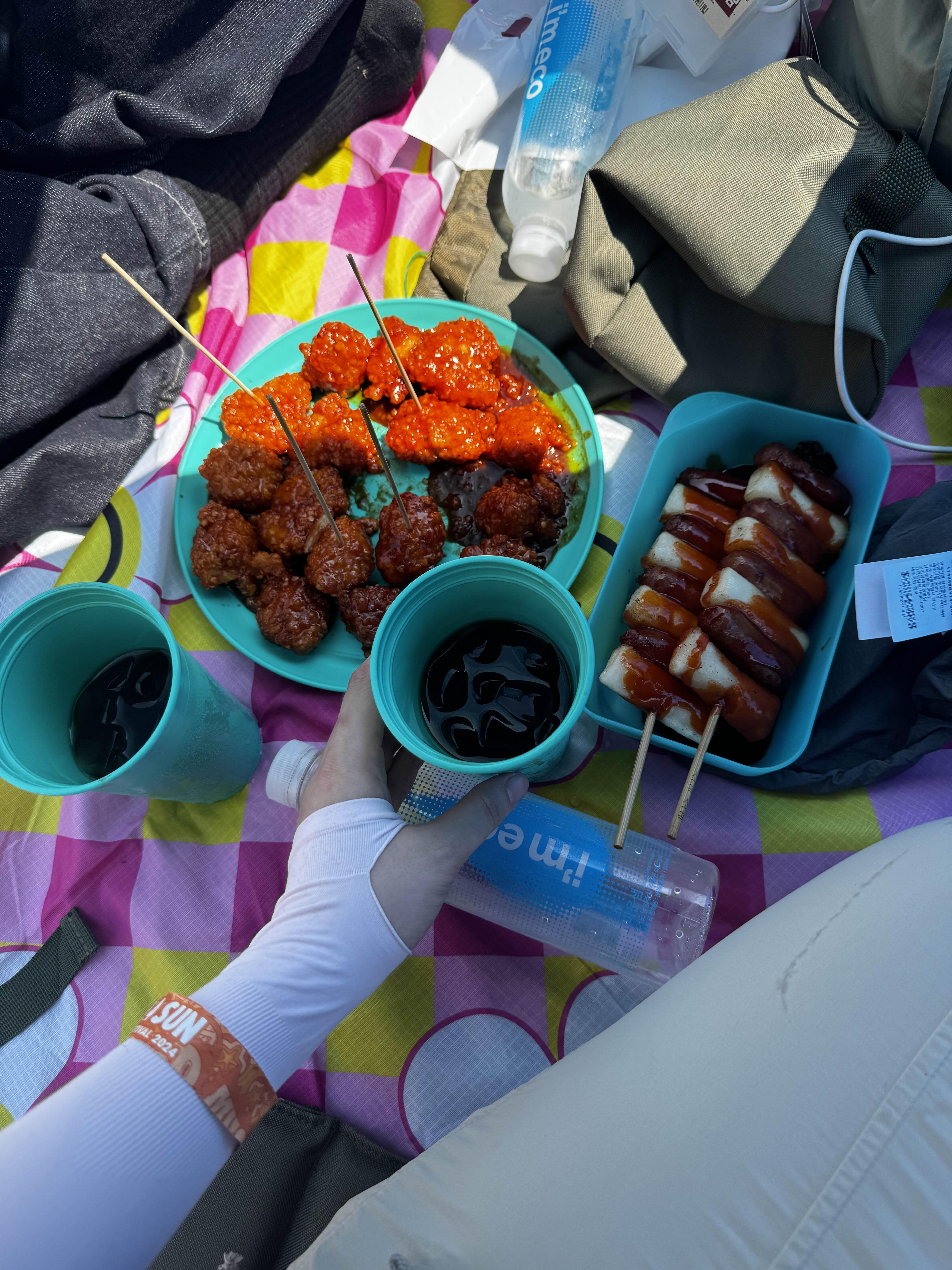 페스티벌에 음식물 반입이 금지된다고 해서, 푸드존을 이용했어요. 하지만 인기 많은 곳은 줄이 길다 못해, 사전 주문을 안 하면 시간 맞추기 힘들 정도였어요. 다행히 저는 몇 일 전에 어플로 미리 주문해놔서 편하게 픽업할 수 있었어요. 하지만 픽업 시간 엄수는 필수! 시간이 지나면 환불도 안되니 주의하세요.